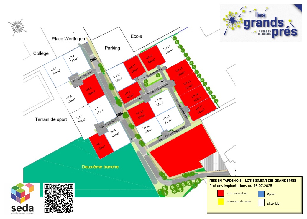 | Description | 21 parcelles entièrement viabilisées, libres de constructeurs dans un quartier calme aux portes de la ville et à proximité immédiate des écoles et du collège. |